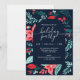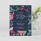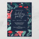 Christmas Party Blue Botanical Red Floral Einladung