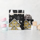 Cute black, white, and gold Christmas illustration with reindeer, Christmas trees, and bears in cute sweaters