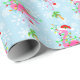 Rosa Weihnachtsflamingos mit Saitenleuchten und eine Weihnachtsmannmütze auf pastellblauem Hintergrund mit Schneeflocken und festlich dekorierten Palmen. Hier auf individualisierbarem Geschenkpapier gezeigt. Sie können das Muster einfach nach Ihren Vorlieben anpassen und Ihre Lieblingsfarbe auswählen. Es ist ein niedliches Weihnachtsfest mit einem tropischen Flair!