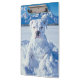 Ein niedlicher, schneebedeckter Grubenhund sieht aus wie ein Schneemobil. "Schneefreudige Grüße von unserem 'Pitt-Snowbull'! Wir wünschen Ihnen frostige und lustige Weihnachten!"