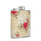 Herrliche rote Poinsettien mit heiligen Beeren, Kiefernzweigen, beige Untergrundfarbe mit weißen Sternen. "Frohe Weihnachten" in Goldtypografie.