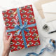 A Christmas pudding pattern on wrapping paper. Use "Personalize this template" to change the "Merry Christmas!" text and create a unique, customized xmas wrap. Featuring my original drawing in a retro, pixel art style, of a pudding, drizzled in brandy sauce and decorated with holly and berries, sitting on a white plate.