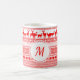 Traditionelles und schönes Muster aus Lappland für Weihnachtsgeschenke und mehr. Rein Hirsche und Schneekristalle in Rot auf anpassbarer Tasse mit weißer Markierung für Monogramm oder Namen.