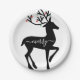 Weihnachts Rentierdekoration Auf der Feiertagszeitung "Frische" stehen auf der Platte schwarze Rentiere mit roten und grünen Ornamenten auf einem weißen Teller mit dem Wort "Fröhlichkeit" in handgeschriebener Schriftzypografie. E-Mail an JMR._Designs@yahoo.com , wenn Sie Hilfe benötigen oder besondere Wünsche haben.