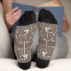 Cute design in brown and white for the Christmas season. Reindeer, snowflakes, branches and twigs, plus space for your text or name on the foot. Christmas socks for a festive atmosphere.