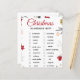 Festive Christmas scavenger hunt checklist artwork with a clean white background and charming holiday illustrations. Designed with elegant red cursive typography, surrounded by cozy winter elements like evergreen branches, snowflakes, houses, trees, a snowman, and warm holiday details. The balanced layout creates a joyful seasonal atmosphere perfect for family-friendly celebrations. All text and images are fully editable, allowing easy changes to match any style or preference.