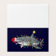 Weihnachtshai. Großes Weiß in Weihnachtsbeleuchtung und Weihnachtsmannmütze und ein Stern.