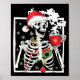Christmas Skeleton With Smiling Skull Drinking Cof Poster