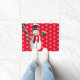 Doormat mit einer roten Hintergrundfarbe und einem niedlichen Weihnachtsschneemobil. Passen Sie diese Matte an oder kaufen Sie, wie es ist.
