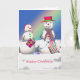 Christmas Snowman Opens Geschenke Feiertagskarte