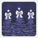 Christmas Sparkling Trees Navy Faux Silver Bow Quadratischer Aufkleber
