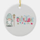 Whimsikaler Grat-Gnome in blauer Garbe mit festlich illustriertem Weihnachtstext auf hellgrauem Hintergrund. Anpassen mit Namen oder persönlicher Nachricht auf der Rückseite