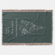 Simple design featuring a white Christmas tree and white Christmas greetings on a dark green throw blanket.