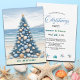 A sweet exotic Christmas design with a Christmas tree made of shells, with the ocean and mountains in the background. You can personalize this invitation with your own details.