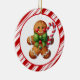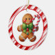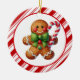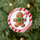 This Christmas tree ceramic ornament is shown in a round shape with a cute gingerbread man print.