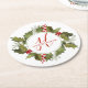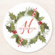 Christmas Watercolor Monogram Script Holly Wreath Runder Pappuntersetzer
