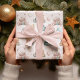"This delightful design features adorable teddy bears dressed in festive scarves and Santa hats, joyfully holding beautifully wrapped Christmas gifts. Surrounded by twinkling stars, candy canes, and winter greenery, these charming bears bring a warm and cheerful spirit to your holiday celebrations. Perfect for wrapping gifts for kids and adults alike, it adds a playful and heartwarming touch under the Christmas tree."