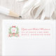This return address label features a beautiful Christmas wreath with names in a red script font and the address in all caps.