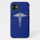 Chrom mag Caduceus-medizinisches Symbol auf blauem Case-Mate iPhone Hülle