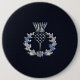 Ein silbernes Chrom wie schottischer Distel Appliqueentwurf auf einem Marineblau-Kohlenstofffaser-Artdruck.