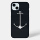 Ein nautisches silberfarbenes Chrom wie Anker auf einer schwarzen Textur. Ein modernes nautisches Geschenk, um einen Eindruck auf, oder aus dem Boot zu machen.