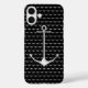 Ein nautisches silberfarbenes Chrom wie Anker auf einer schwarzen Textur. Ein modernes nautisches Geschenk, um einen Eindruck auf, oder aus dem Boot zu machen. Verwenden Sie den Link "Nachricht", um uns mit Ihren speziellen Designanfragen zu kontaktieren oder um Hilfe bei Ihren individuellen Projektbedürfnissen zu erhalten.