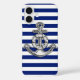 Ein silberfarbener Ankerstil in einem marineblauen Streifen-Dekor. Ein modernes nautisches Geschenk für Ihr Gerät. Verwenden Sie den Link "Nachricht", um uns mit Ihren speziellen Designanfragen oder für Hilfe bei Ihren individuellen Wünschen zu kontaktieren.