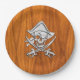 Chrome Silver Pirat on Teak Veneer Decor Pappteller