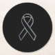 Chrome Style Black Ribbon Awareness on Black Runder Pappuntersetzer