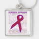 Chronische Migräne ist eine neurologische Krankheit, die den gesamten Körper beeinflußt. Dieser Schlüsselanhänger kennzeichnet eine Liste von einigen der allgemeinsten Symptome der Migräne und umgibt das lila-und-rote chronische Migränebewusstseinsband. Chronischer Migräne-Bewusstseins-Tag ist jeder am 29. Juni, aber dieser Schlüsselanhänger ist groß, alles Jahr zu verwenden!
