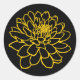 Chrysanthemum Zeichnend - Bernstein auf Schwarz Runder Aufkleber
