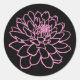 Chrysanthemum Zeichnend - Rosa auf Schwarz Runder Aufkleber