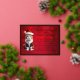 Envoyez vos salutations avec notre Chubby Cat à Santa Hat Foil Post Card montrant un adorable chatte en bois vêtu d'un chapeau de Père Noël contre un arrière - plan rouge aux flocons de neige entouré d'une bordure en feuille d'or. Tous les textes sont imprimés en feuille d'or et sont entièrement personnalisables si vous voulez insérer votre propre salutation de Noël personnalisée.