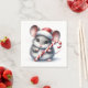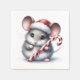 Eine niedliche flauschige Maus trägt eine Weihnachtsmannmütze und hält einen großen gestreiften Bonbons