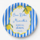 Ciao Bella Dolce Vita Lemons blaue Streifen Italienisches Brautparty personalisierte Papier Teller Vorlage, Zitrus Zitronen blaue Streifen Brautparty mit Monogramm PapierTeller; Italienisches Brautparty gedruckte Papier-Teller, Vintag italienischen Brautparty Papier Teller, wavy border funky Brautparty personalisiert Teller Namen Papier