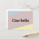Ciao bella italienisch Schrift auf einem farbenfrohen geometrischen Hintergrund.