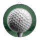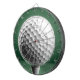 Une balle de golf blanche sur un tee blanc devant un arrière - plan vert.