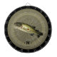 Bass Fish Monogram Cible de flechettes Homme Poisson design créé à partir d'une photo personnelle originale pour que chacun puisse profiter sur un jeu de fléchettes. Vous pouvez customiser le vert foncé et le noir à différentes couleurs pour l'arrière - plan si vous le souhaitez. Monogramme est au centre inférieur. Grand cadeau pour les hommes qui aiment jouer aux fléchettes. CLIQUEZ SUR PERSONNALISER L'OPTION MODÈLE ET ENTREZ MONOGRAM INITIAL