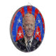 Caricature de Joe Biden sur un abstrait rouge blanc et bleu étoiles et rayures arrière - plan. Le point rouge au centre du tableau de fléchettes coïncide avec le nez du dessin animé.