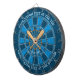 Icône de baseball avec deux chauves-souris et une balle sur un bouclier bleu. Arrière - plan bleu grognon. Trois zones de texte personnalisées.