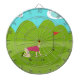 Cette Cible de flechettes de golf Retro est plus amusante qu'une journée sur les greens. Le style des années 60, le design minimaliste de l'art n'est pas à l'honneur. Il dispose d'un golfeur solitaire sur un fairway verdoyant. Le golfeur moderne du milieu du siècle fait une véritable déclaration de mode dans son élégant, plaid, pantalon de golf et chemise fuchsia. Le guerrier blond, en forme, du week-end est sur les mains et les genoux essayant de ranger un tir. Ou peut-être qu'il essaie de donner un coup de pouce à la balle dans la direction du trou. Est-ce vraiment important ? A ses côtés, nous voyons un seul club de golf. Devant lui, se trouve le trou insaisissable, avec un drapeau rouge, qui le taquine. L'arrière - plan présente une ligne verte de caricaturistes, un ciel d'aqua et deux nuages blancs en forme de haricots rouges. Ce design est sûr d'être un trou dans un avec votre pro de golf préféré.