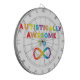 Design fait avec amour pour la Sensibilisation sur l'autisme. Les lettres arc-en-ciel forment l'expression "Autistiquement Awesome To Infinity" avec un symbole infinity.
