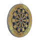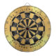 A classic dartboard design with alternating black marble and faux gold triangles. The outer circle is faux gold foil and has black arched text in it: the family name in the upper part and a custom message in the lower part.