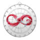 Infinity symbole of continuous stream of red pouring into glass glass glass on white background.