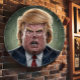 Photo de la Cible de flechettes de Donald Trump. Un tableau de bord humoristique avec une caricature de Donald Trump, avec un oeil au bullseye sur le nez. Parfait pour une soirée de jeu entre amis ou pour l'exposition à la maison. Un tableau de bord rond représentant une caricature de Donald Trump. La cible est centrée sur son visage, avec le bullseye directement sur son nez. Ce tableau de bord humoristique est parfait pour un jeu de fléchettes léger.
