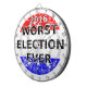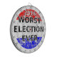 Les pires candidats. Cercle en rouge, bleu et blanc, texte en noir avec contours blancs. Effet désordonné appliqué au design.