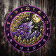Cible De Fléchettes Loup pourpre contre le ciel étoilé