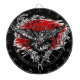 Conception originale d'une corneille noire volant. Créé avec des crayons, des stylos et des numériquement colorés.