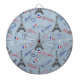 Seamless Paris text illustration with Eiffel Tower, tricolor heart shapes and French flag decoration on blue background for Valentine's Day