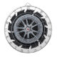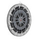 Un volant en chrome à cinq branches en argent, en aluminium et en noir de l'artiste Jason Girard conçu pour les amateurs de voitures et les collectionneurs qui peuvent aimer ceci pour un ajout de salle de jeu.